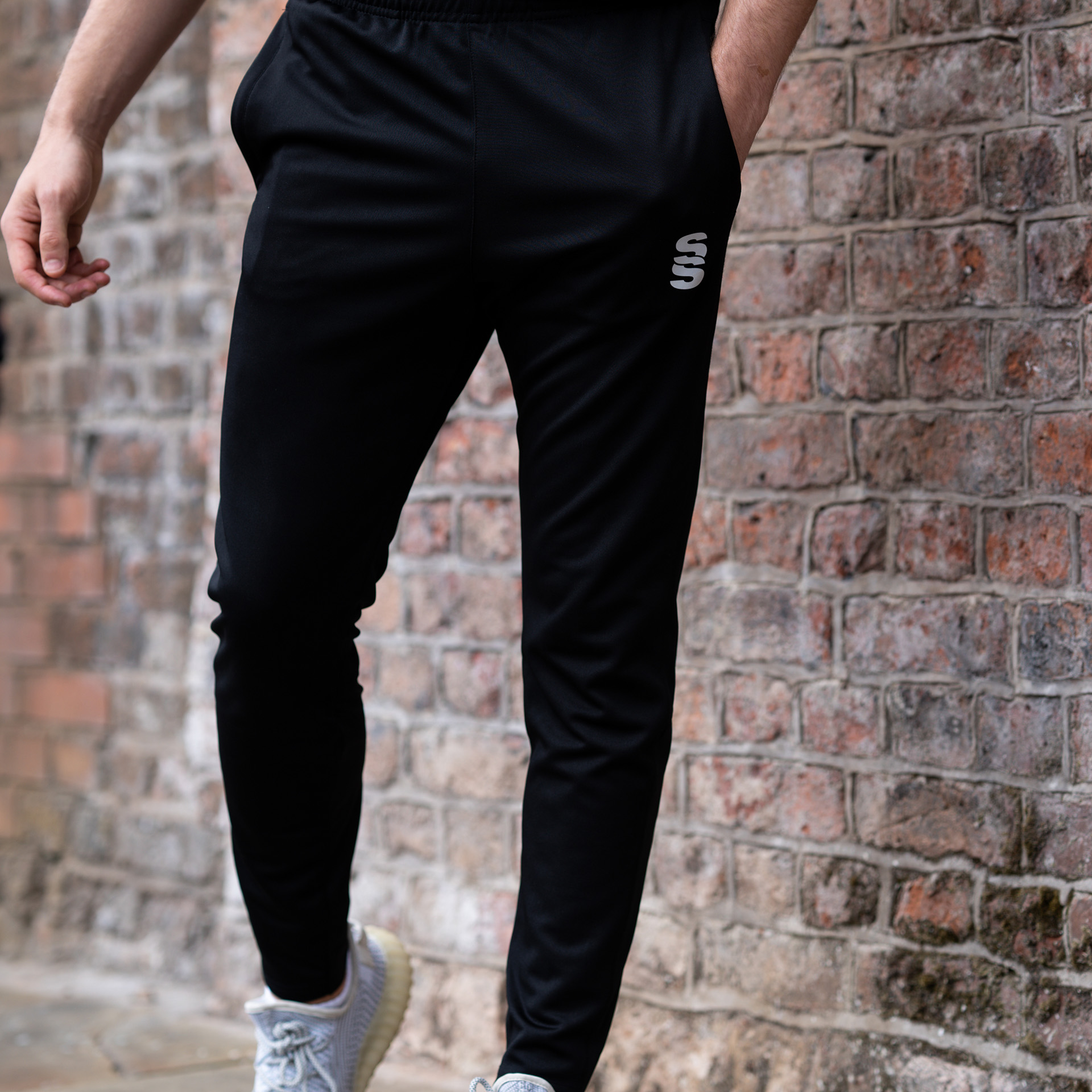 The Skinny Pant is made of soft feel stretchy polyester material, interlocked for performance. A Lycra insert at the calf provides extra comfort. It features 2 almost-invisible zipped pockets for security. To finish, our Surridge SS logo is printed on to the left thigh.