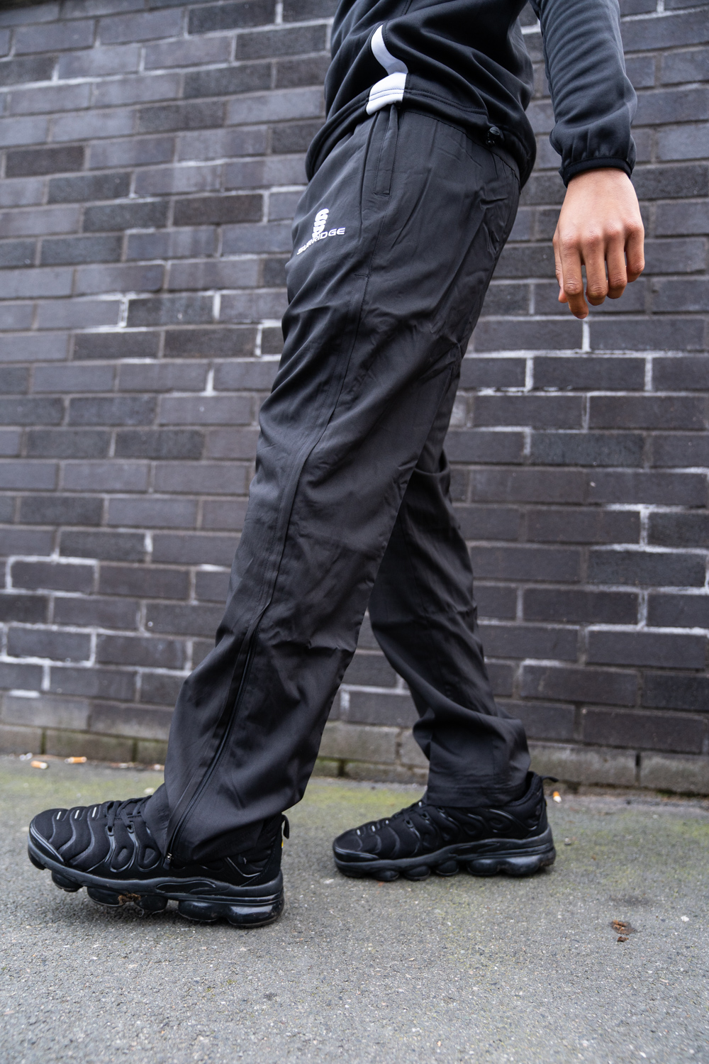 Straight leg trousers with 3/4 length side zip. 2 zipepd pockets and cotton feel lining.