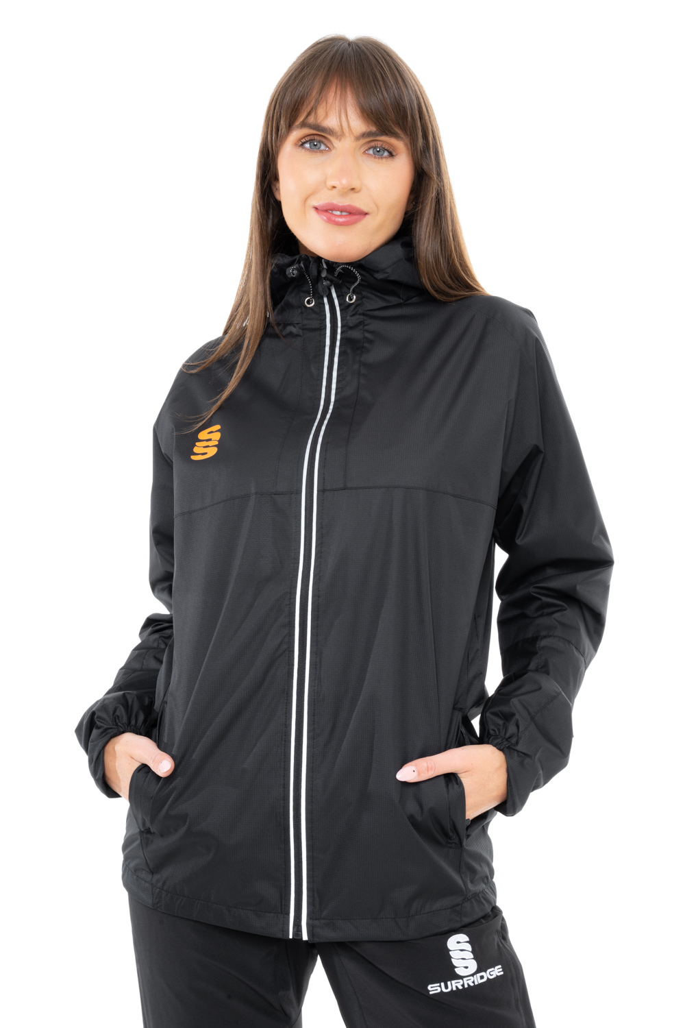 The Dual Full Zip Training Jacket is made with a mesh lined polyester, with a wax coated outer shell making it light and fully waterproof. It comes with reflective water resistant zip detail and 2 zip pockets, with the hood having adjustable toggles. It features underarm vents to stay breathable but warm, making it perfect for training when the weather is damp. To finish, our Surridge SS logo is situated on the right chest.